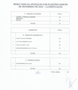 Clique no link abaixo para visualizar o resultado das Eleições AENFER de novembro de 2025 – Classificação